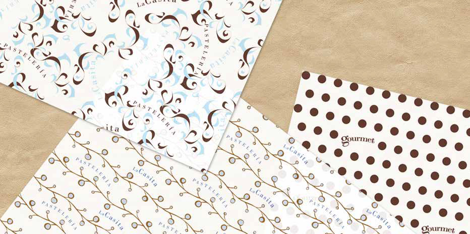El patrón diseñado para el papel china de La Casita Pastelería refuerza la identidad visual de la marca a través de una composición sutil, armónica y reconocible. Este papel se utiliza como envoltura interna en cajas y empaques, brindando una experiencia de unboxing cálida, cuidada y coherente con la esencia artesanal y acogedora de la pastelería.